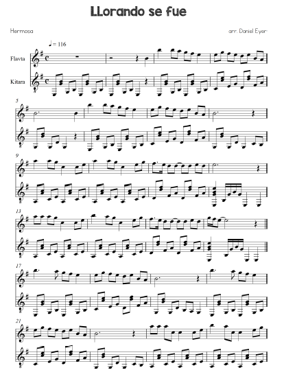 Priredba je duo za flavto in kitaro. Melodijo igra flavta, kitara jo spremlja. Primerna se mi zdi za 3. ali 4. razred.